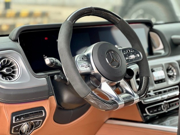 2024款奔驰G63它硬朗的方盒子造型,没有多余的弧度、没有任何曲线,眼光所及满是平直锋利的线条,就连车顶上的导雨沟槽,也是沿着车顶周围一圈,分外焊接上去的金属槽,车门搭钮更是绝不虚心,硬挺挺地屹立在门缝之外,外凸的轮拱、造型如同 梯形的引擎盖。G63整体提升了城市公路性能,全系改用4.0升V8双涡轮增压发动机,同比上一代油耗方面大大降低,而经过AMG调校动力有极大的提升。21款奔驰G63内饰方面,奔驰的设计绝对可以用惊艳来形容,无论是经典车型还是超豪华车型甚至是入门级的豪华车上,奔驰的内饰都会让你眼前一亮,当然了这也是奔驰的一个特色。